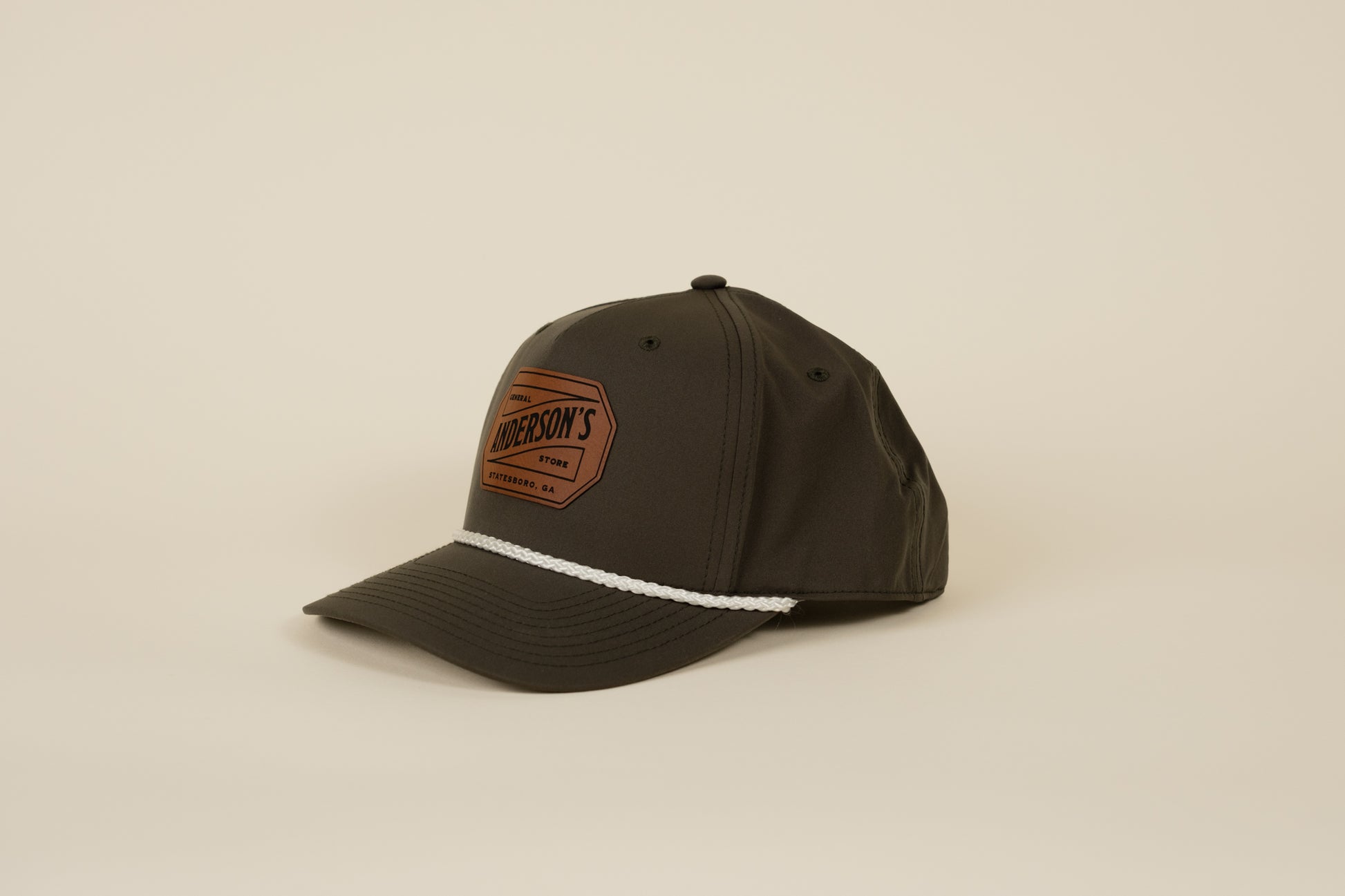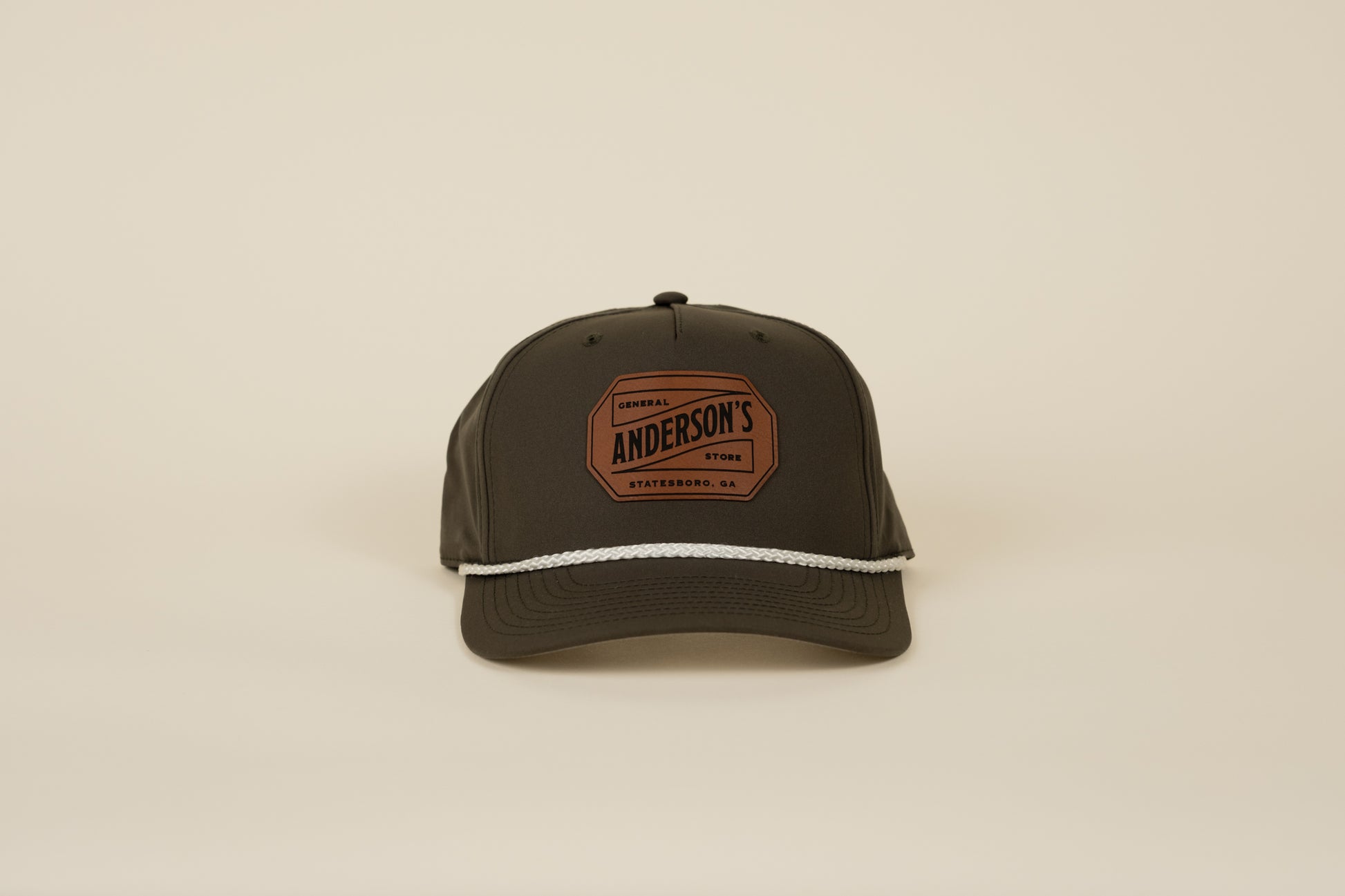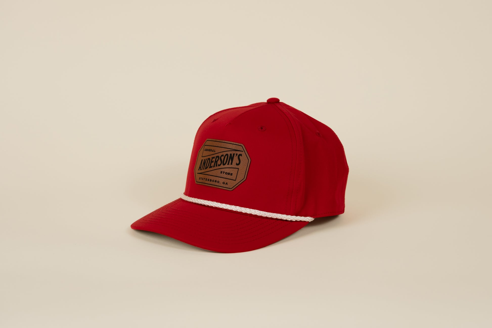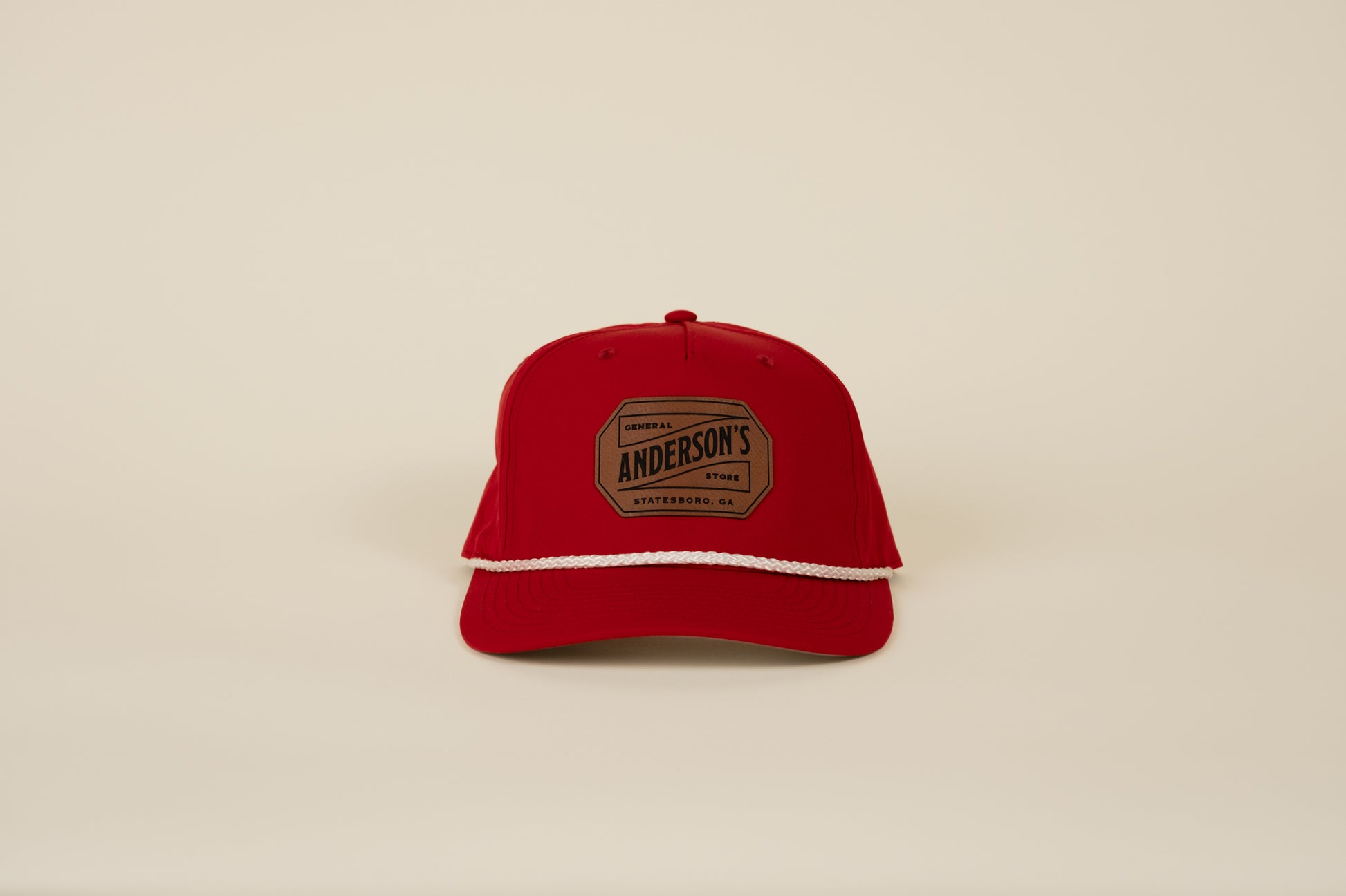 Stylish rope-front snapback hat featuring a leather Anderson's logo patch. Designed for aesthetics and comfort, it's the perfect cap for everyday wear. One Size Fits All.