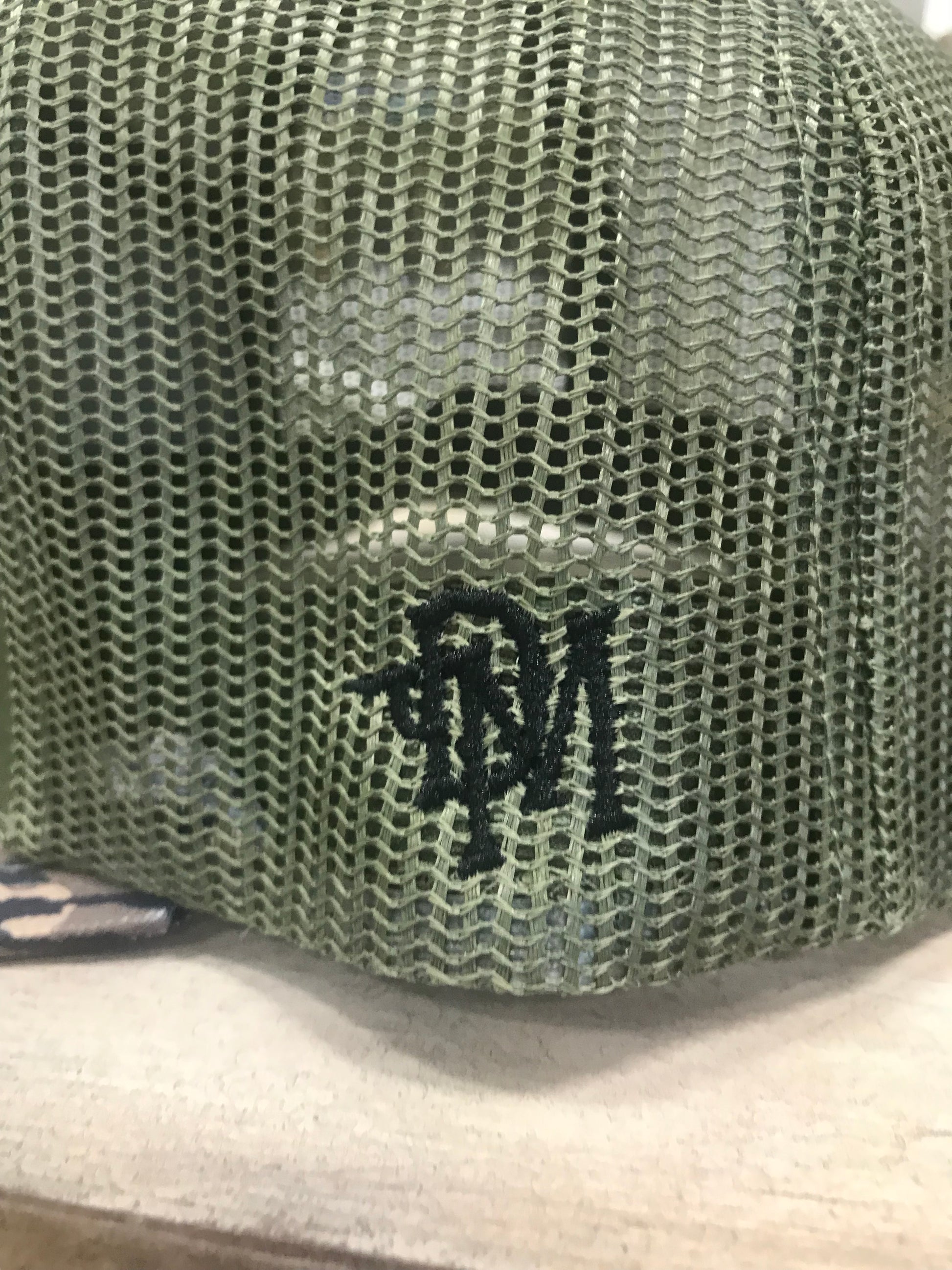 Showcase your style with the signature Dylan Marlowe camo and green 7-panel trucker hat. A perfect blend of classic and contemporary, it's a must-have for fans and trendsetters alike. One Size Fits All.